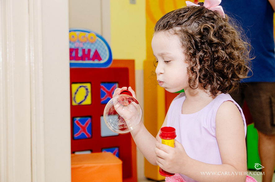 Se a festa tem brinquedos e amigos, a criançada adora... mas para essa aniversariante linda, a festa teve bolinha de sabão e essa foi a maior diversão!!