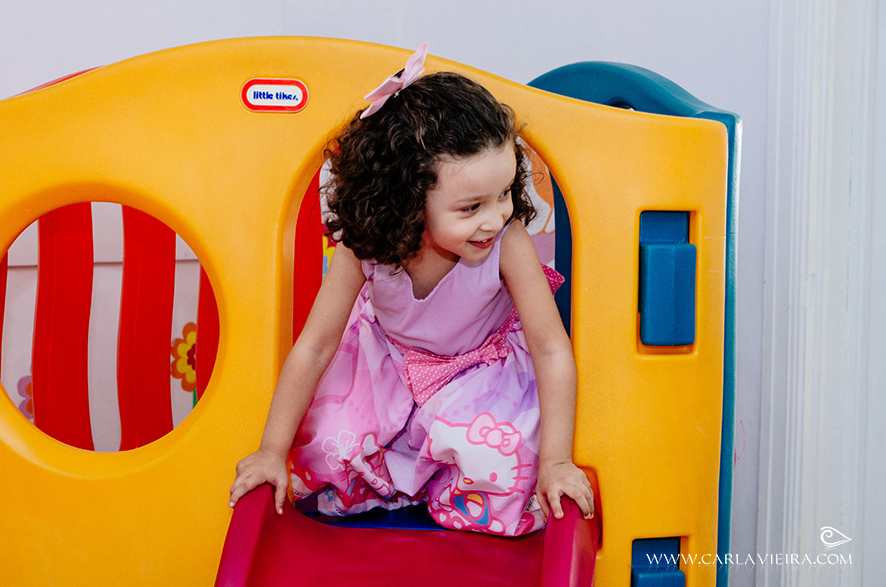 A Lara é uma menina meiga, carinhosa e adora brincar. Mas foi um desafio fotografá-la. Se o clique demorasse um segundo a mais, zuuummmm, ela já estava longe correndo para a diversão.